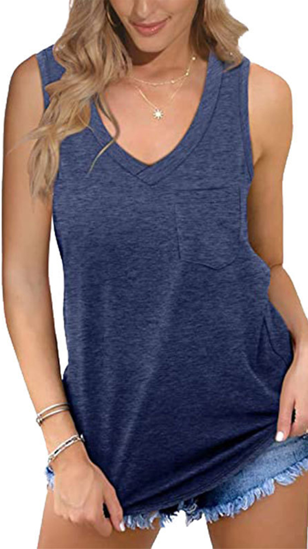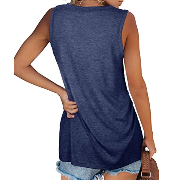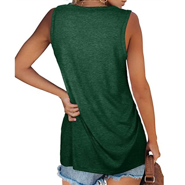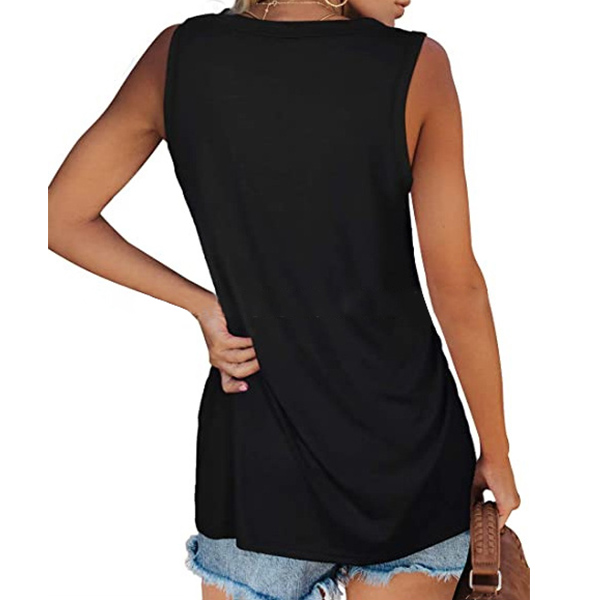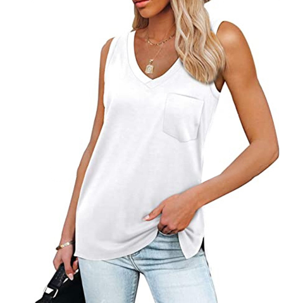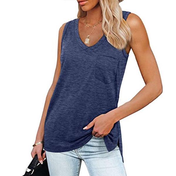 Casual Style Sleeveless V-neck Side-slit Solid Color Loose Tank Top