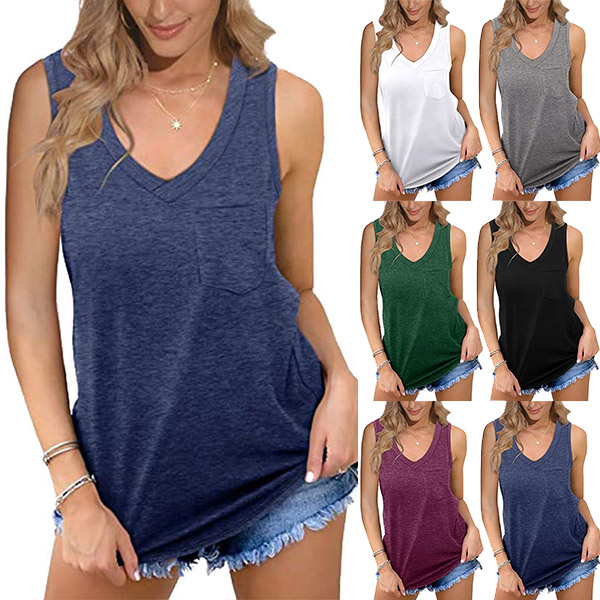 Combines of simple,cozy and stylish vibes,this t-shirt is worth to arouse your attention. Crafted in a solid color,with sleeveless,v-neck and a loose silhouette,this piece can promise you a cool and comfortable day. And the side-slit hem design will add some extra charm. Try to match with a shorts to enjoy your summer days.
