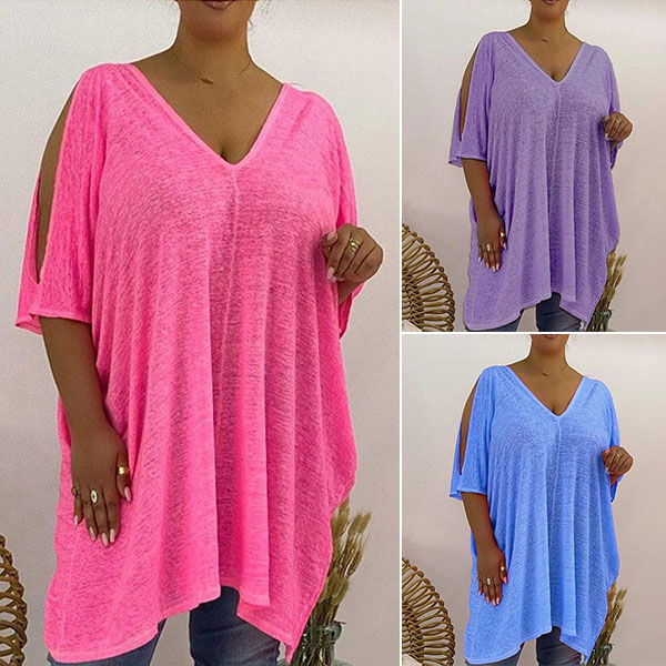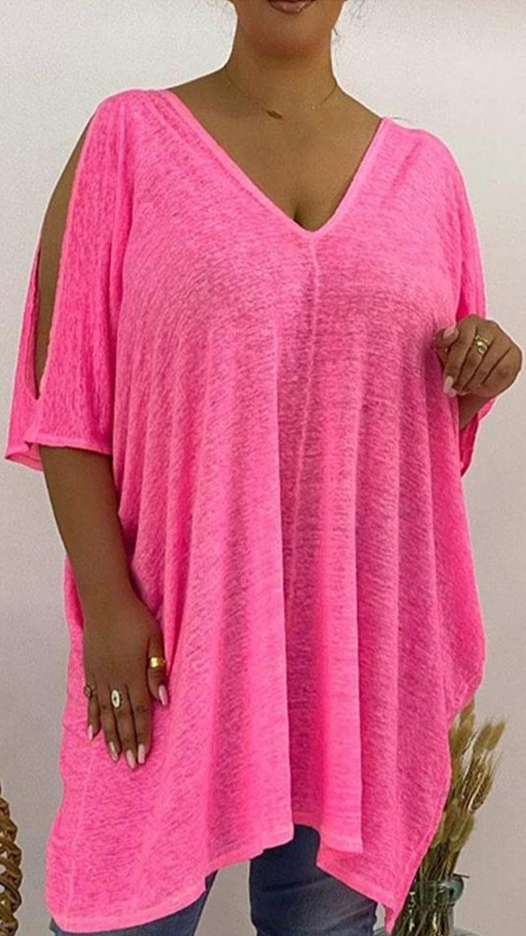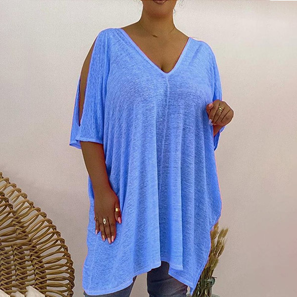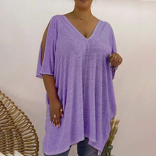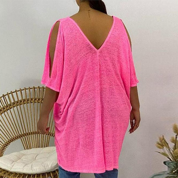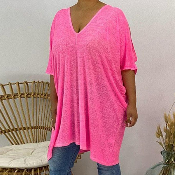 Grâce à son tissu super doux et respirant et à sa silhouette ample, ce t-shirt vous procure un confort tout au long de la journée. De couleur unie, le col en V et la fente au niveau de la manche rompent avec le style simple et terne. Cette pièce est juste ce qu'il vous faut pour vos journées décontractées.