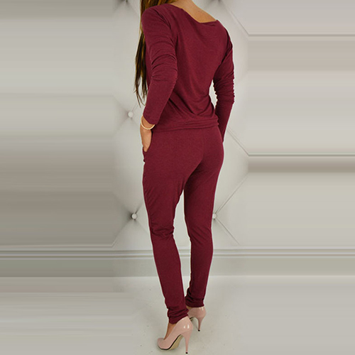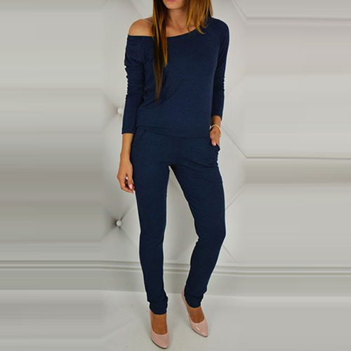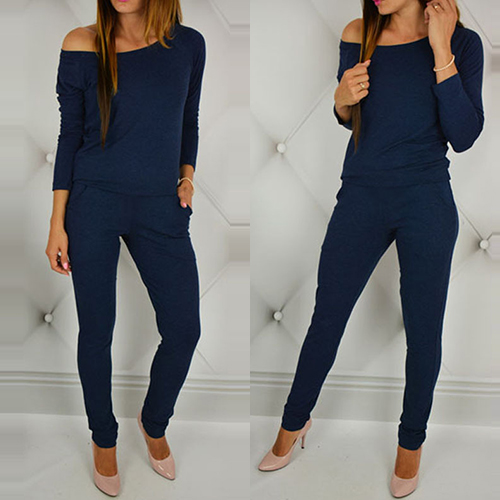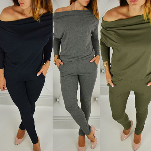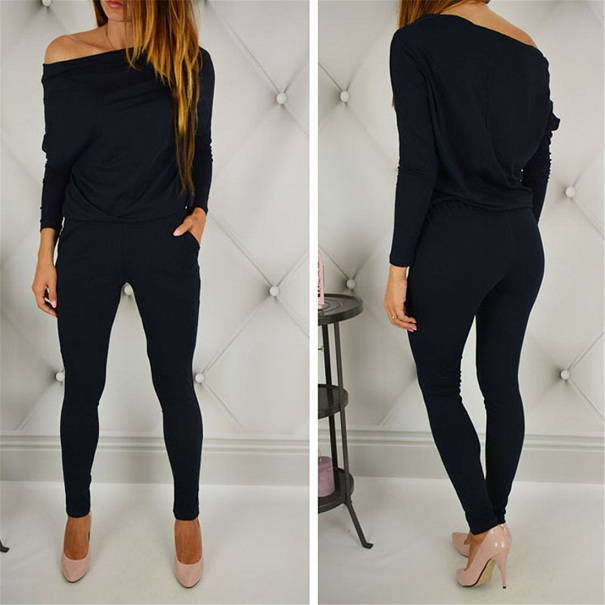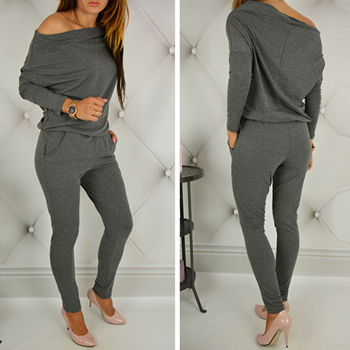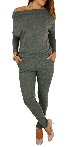In order to let you enjoy a more wonderful weekend, this casual piece would be introduced into your weekend ensemble. Crafted from sleek and soft fabric, equipped with off shoulder, long sleeve and 2 side pockets design, this jumpsuit plays a vital role in showing your sexy and casual style charm.On your weekends, you can pair it with your sneakers for your sports time or pair with your heels for a cozy dating time.