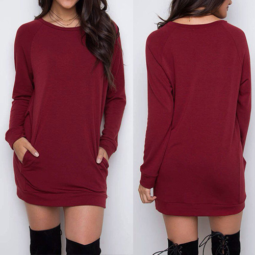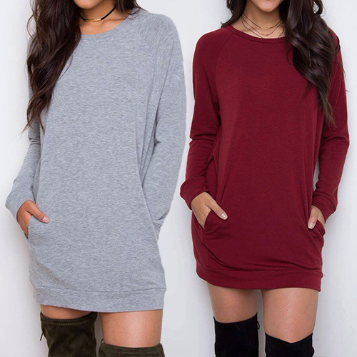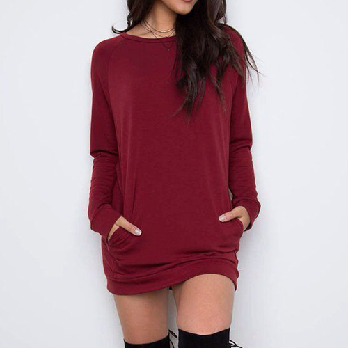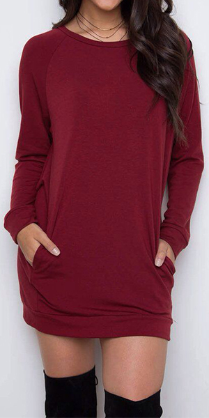 you happy. Solid color series, with round neck and long sleeve design, the 2-side pocket can