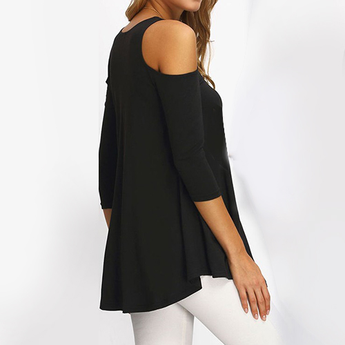 Features round neck, cold shoulder and solid color design, this T-shirt can let you enjoy a more