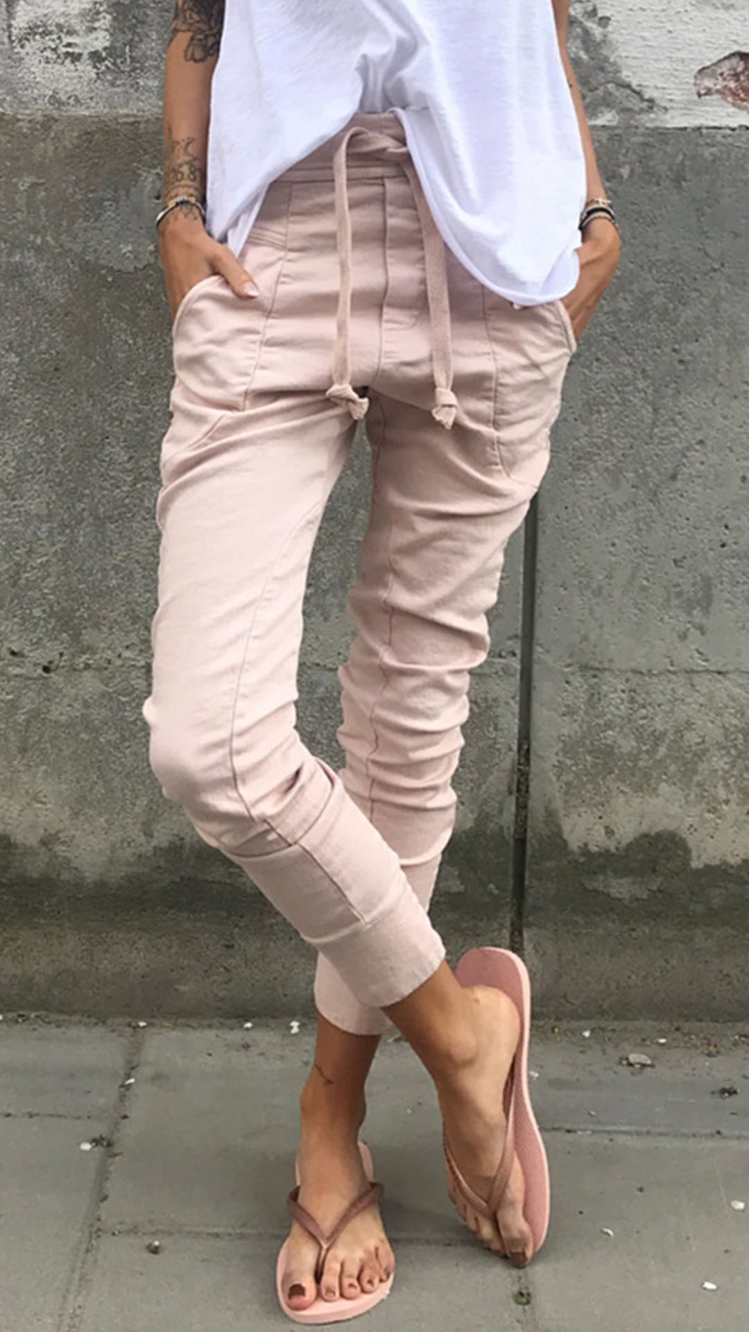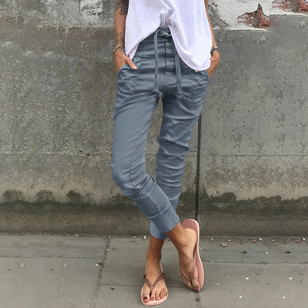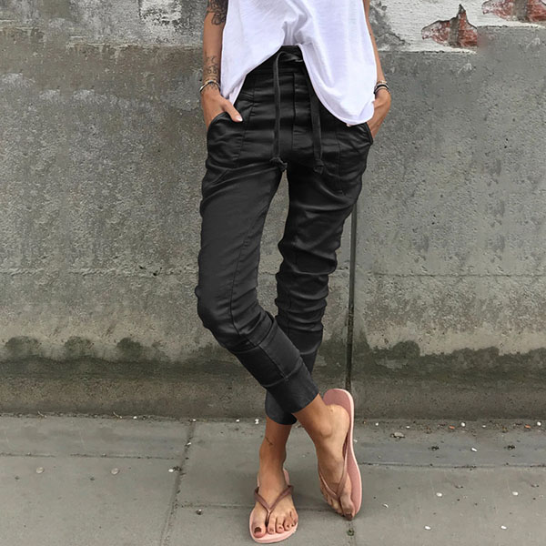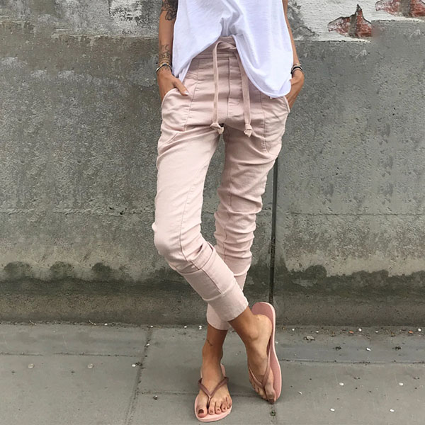 This pants comes with a solid color,simple,stylish yet generous. Crafted from soft and breathable fabric,with a drawstring elastic waist,which also can ensure you a comfortable day. You can just match it with a simple t-shirt,then a laid-back but fashionable daily look cab be finished.