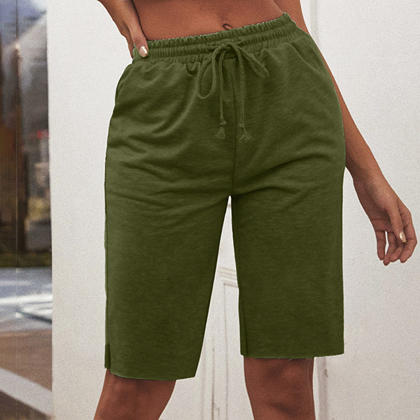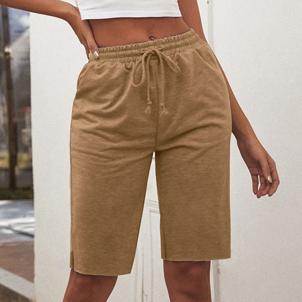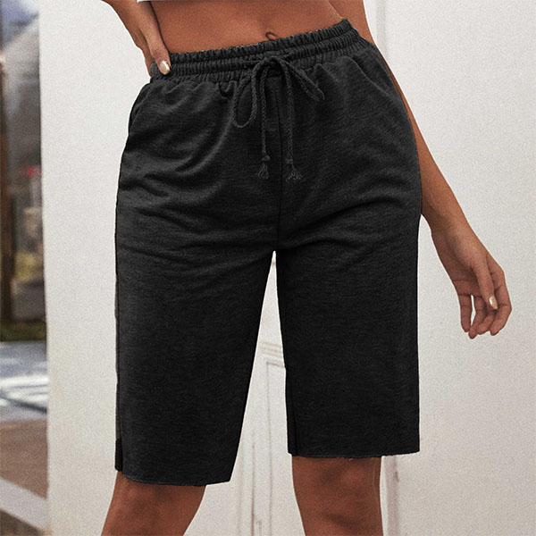 For your sports time and casual days,this knee-length shorts can be your perfect partner. Solid color style,its soft,breathable fabric and elastic waist design can promise you a comfortable day. Simply matching with a simple t-shirt to have a laid-back,relaxed style.