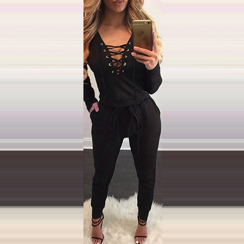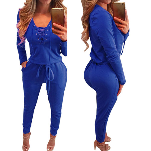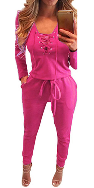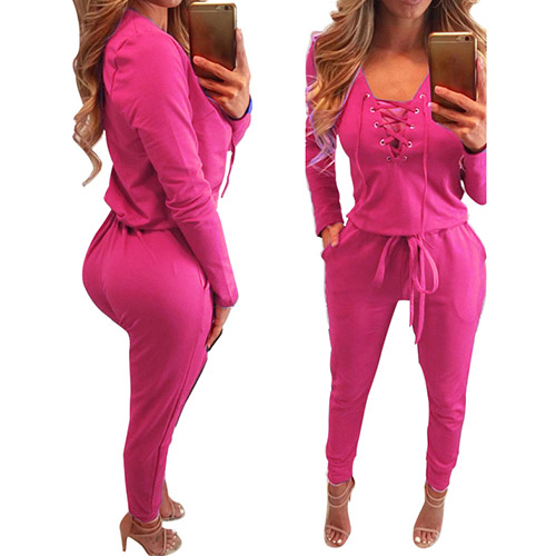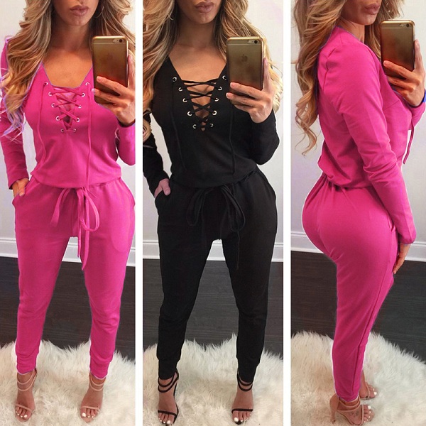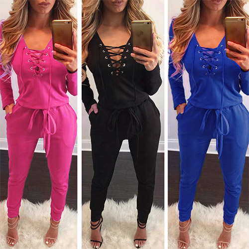 for your everyday wear. Solid color series, equipped with front lace-up, deep v-neck and long sleeve