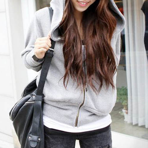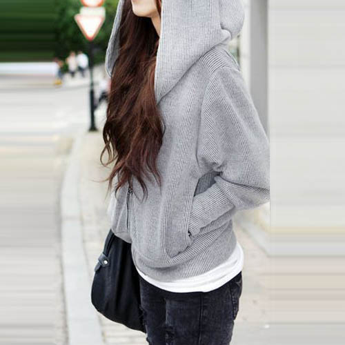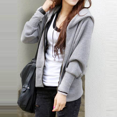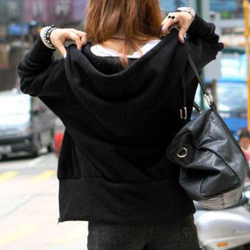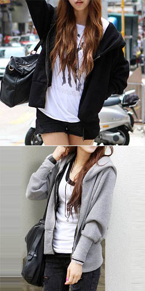 Styled with solid color, hooded and bat sleeve design, this sweatshirt coat can perfect cover