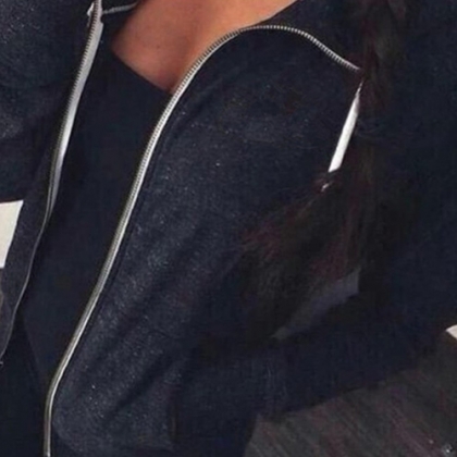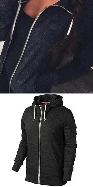 Cool black hue is paired with hooded, long sleeve and front zipper design, which is aimed to