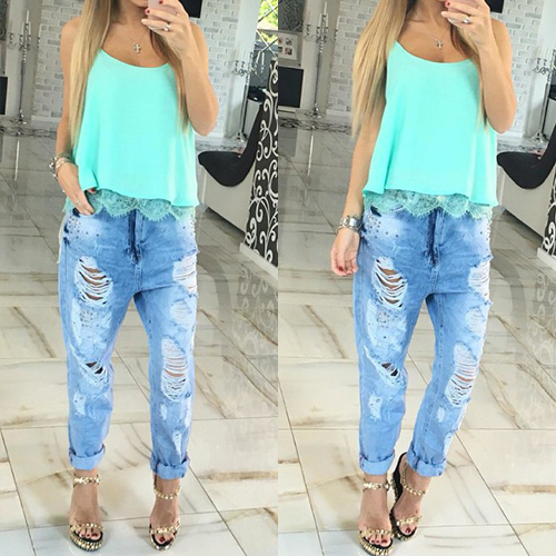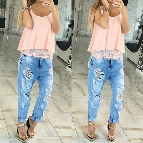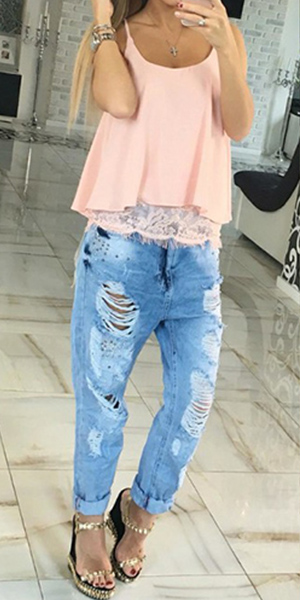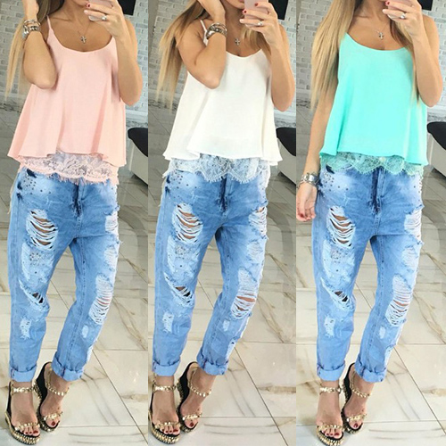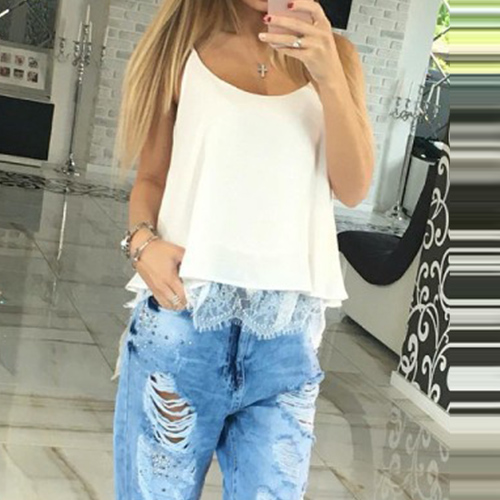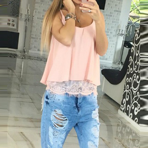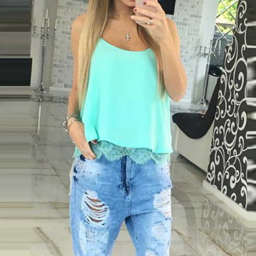 low-cut, sleeveless and lace spliced design which can better show your charming clavicle and sultry