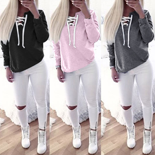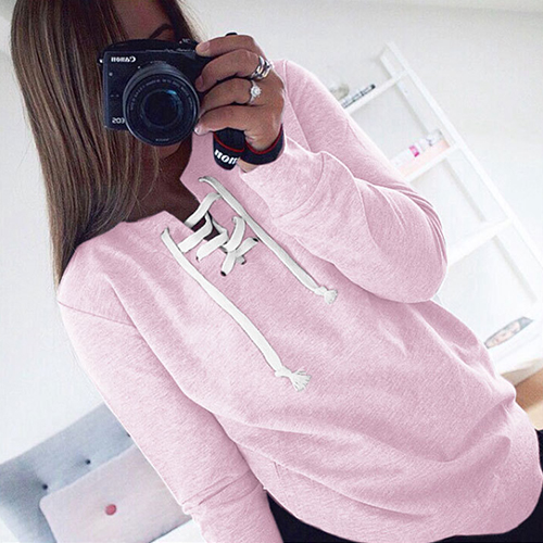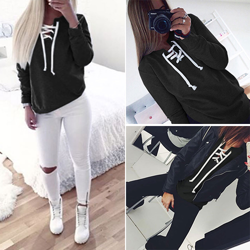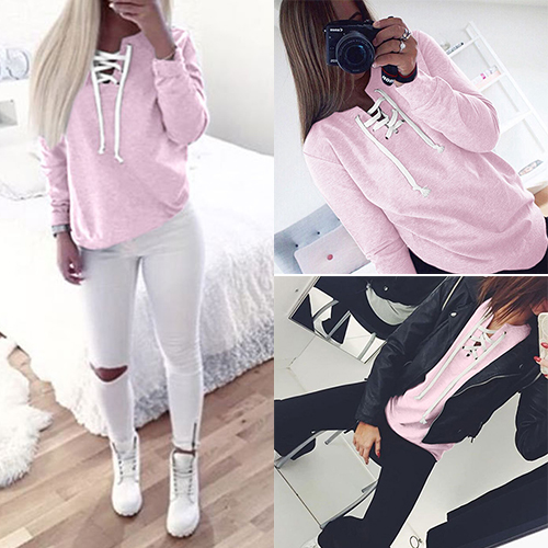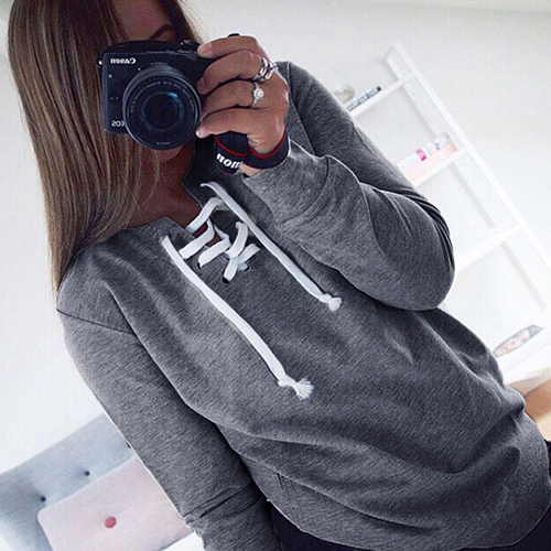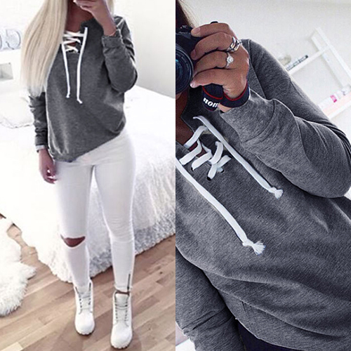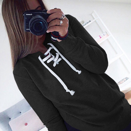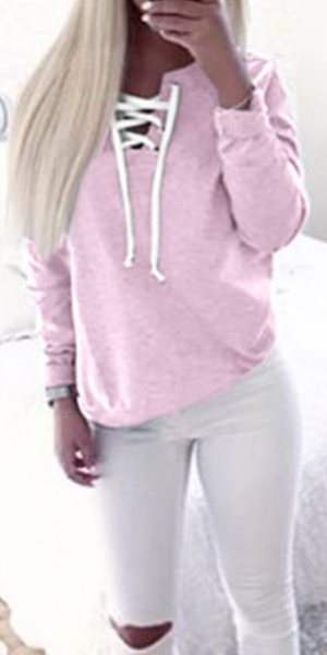 solid color, lace-up v-neck and long sleeve design, which can give you a minimalist and fashion