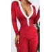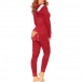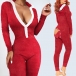 Casual Style Solid Color Long Sleeve Back-button Plush Loungewear Nightwear Jumpsuit