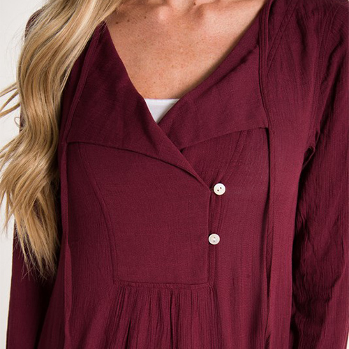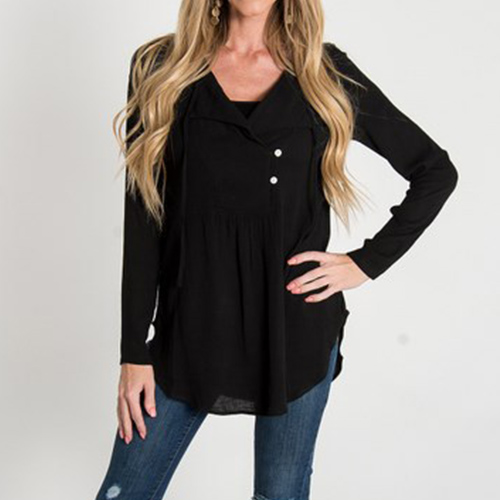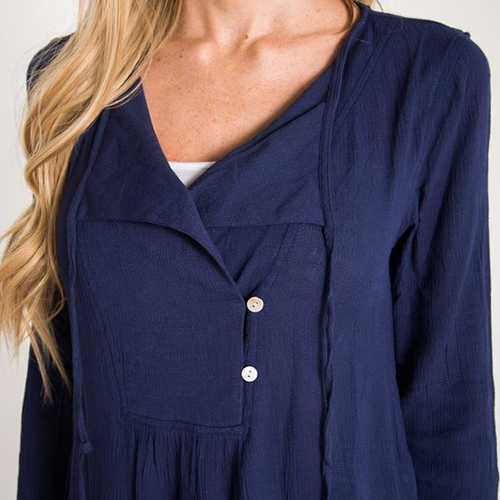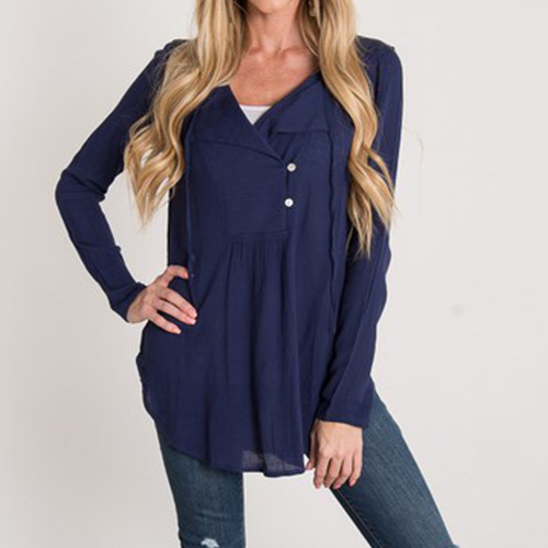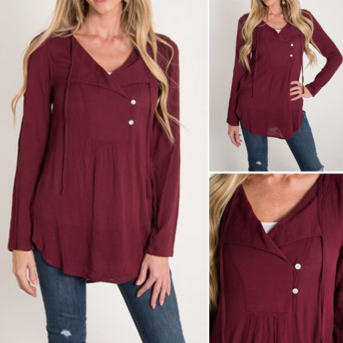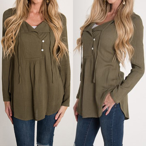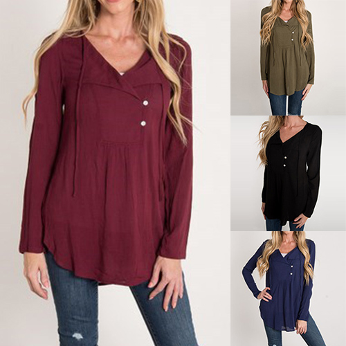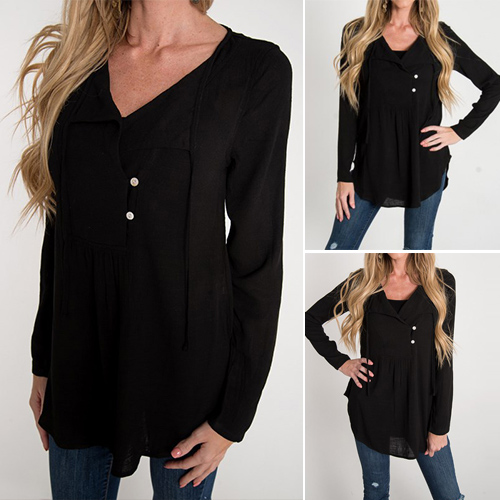 solid color, long sleeve and v-neck design, it looks concise and casual. V-neckline with buttons and lace-up
