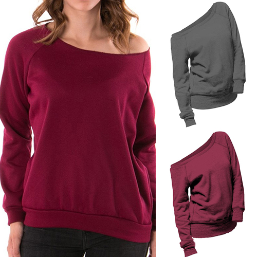 Showcase your casual style charm via this sweatshirt. Sexy oblique shoulder construction, complemented