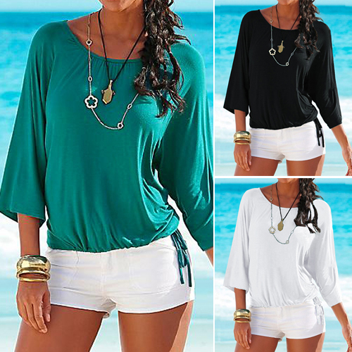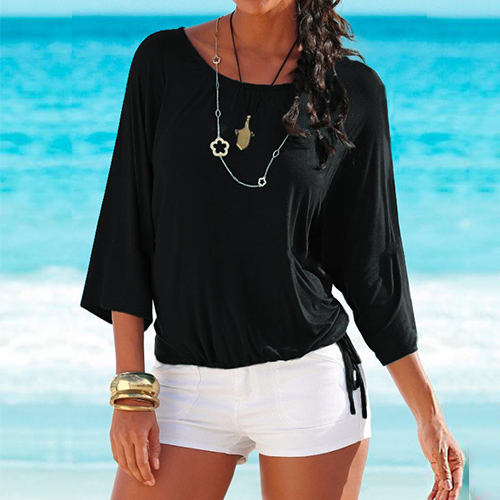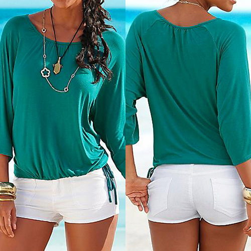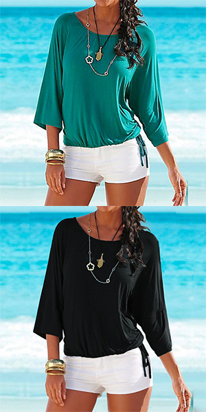 Simple design but unusual wearing effect. This T-shirt features round neck, solid color and 3/4 sleeve design,