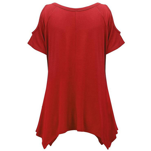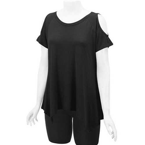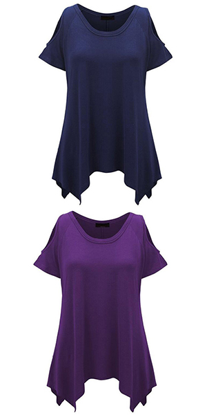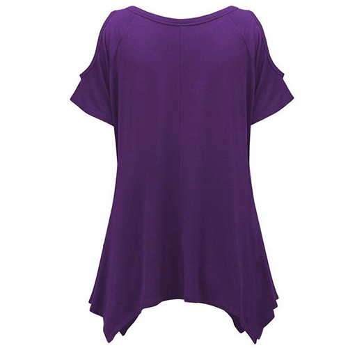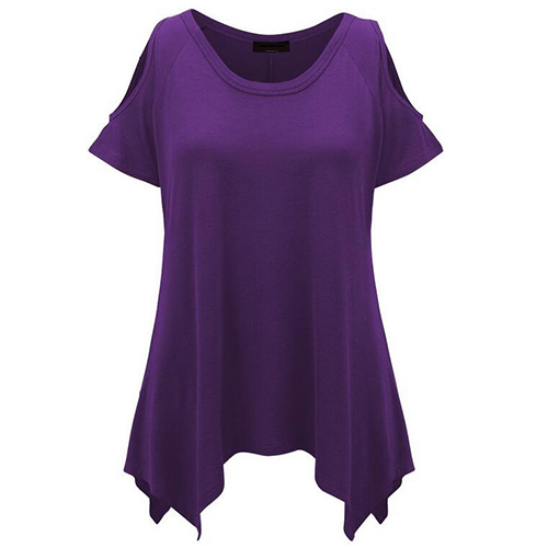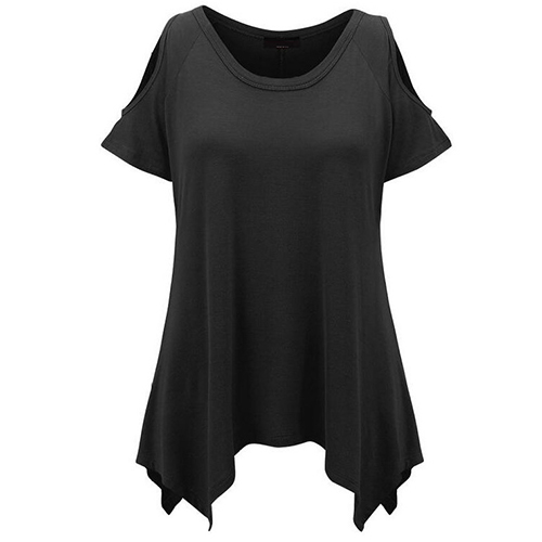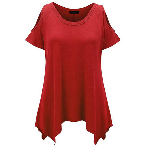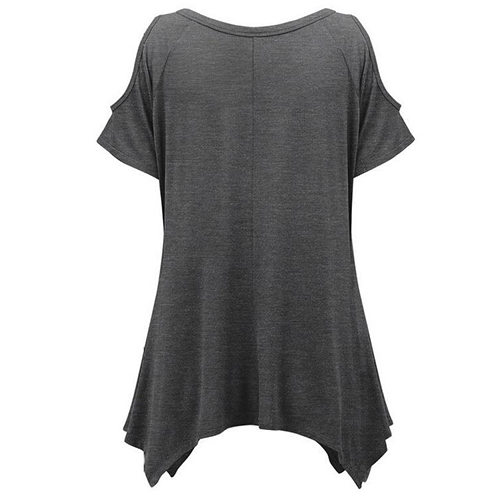 round neck, cold shoulder and short sleeve, casual and fashion. Irregular hemline design, chic and
