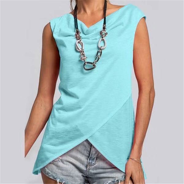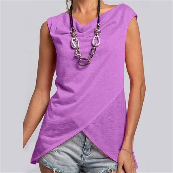 Workout in comfort and modern design with this irregular hem sleeveless top! Designed in a loose-fit