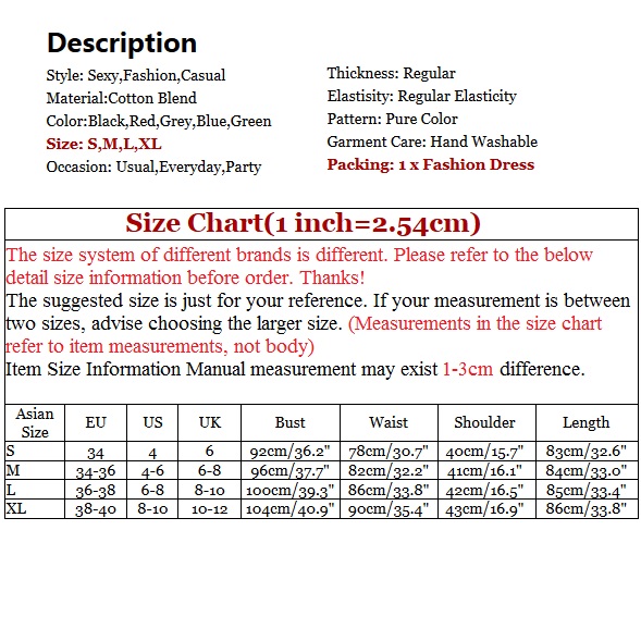 XL : Bust : 104cm(40.94"); Waist : 90cm(35.43"); Shoulder : 43cm(16.93"); Length : 86cm(33.86");
