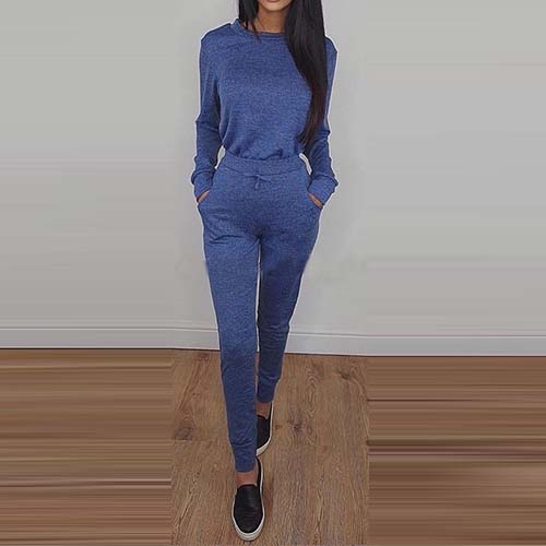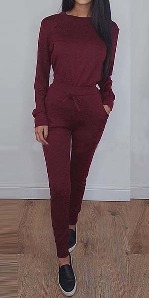 long sleeve round neck and gathered waist design, and this set can lend you a casual and trendy