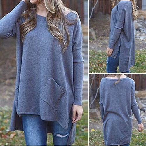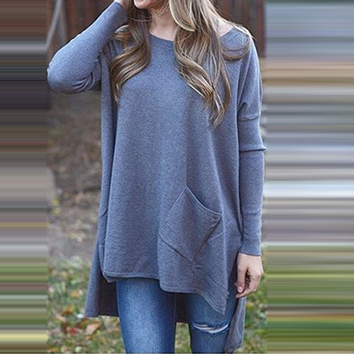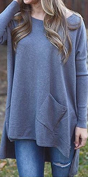 round neck, long sleeve and irregular hem design, a side pocket makes this tops more distinctive. Cozy
