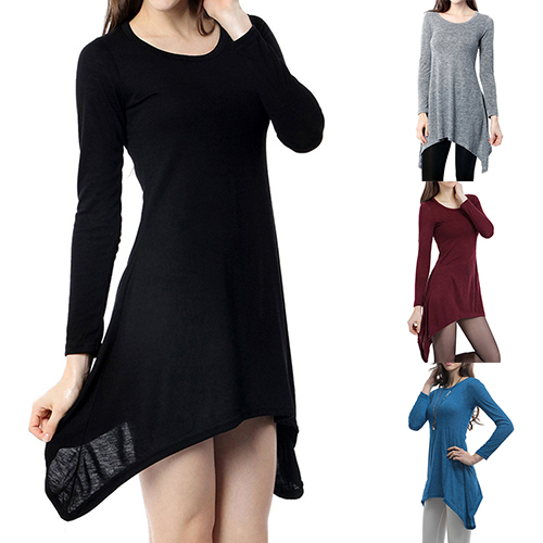 with round neck, long sleeve and irregular hemline design, this casual dress can give you a concise and