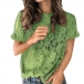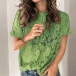 If you want to look more mature, then look here. This lace top is designed with a solid color,finished with short sleeve and round neck design,which can exude your style and charm. Loose type and soft,breathable fabric make it cool to wear in summer. I suggest you pairing it with your favourite bottoms to achieve for a fashionable daily look.