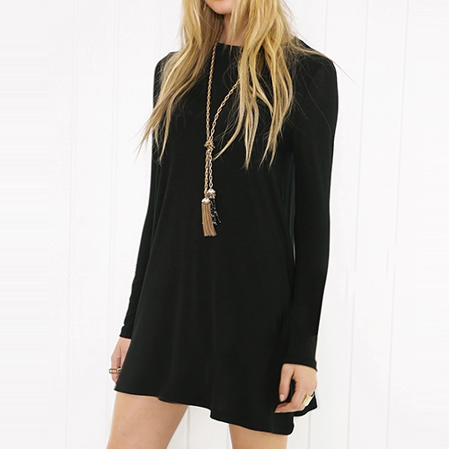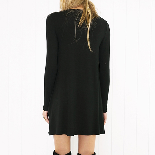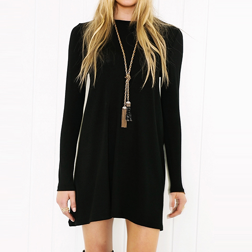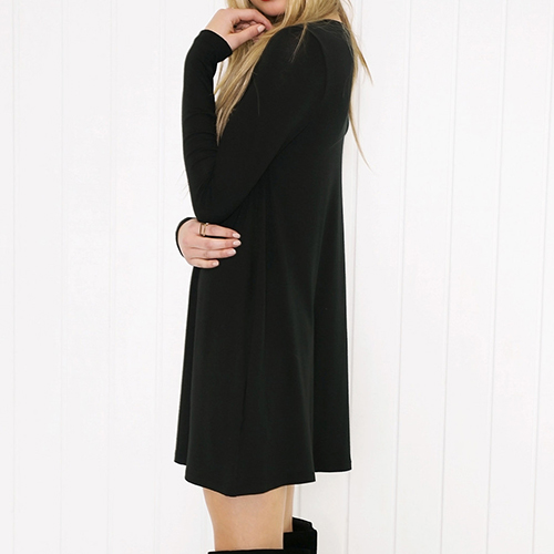 Casual Style Solid Color Round Neck Long Sleeve Relaxed Dress