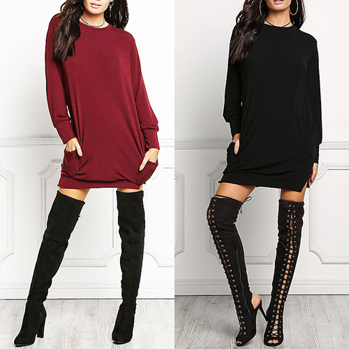 Your casual and minimalist style would be achieved in this solid-color dress. Round neck construction is