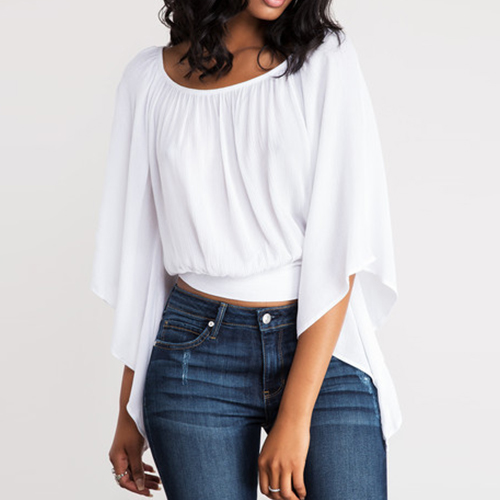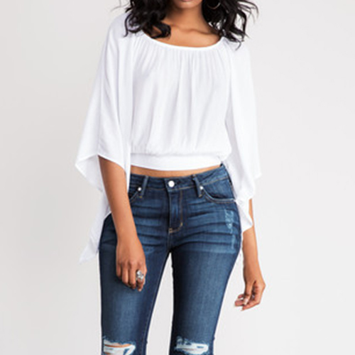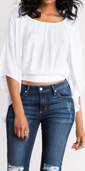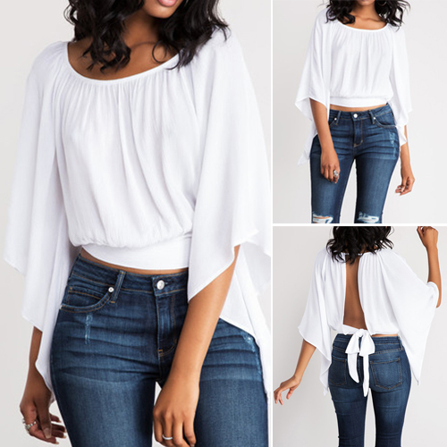 show your sun-kissed skin. Its flowy construction features round neck, backless and irregular sleeve