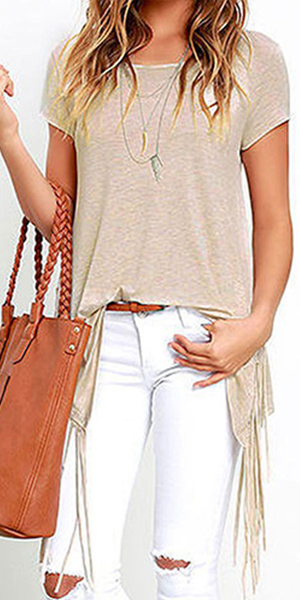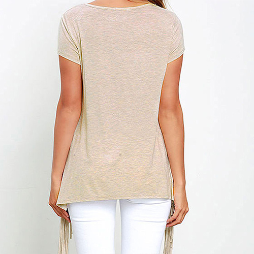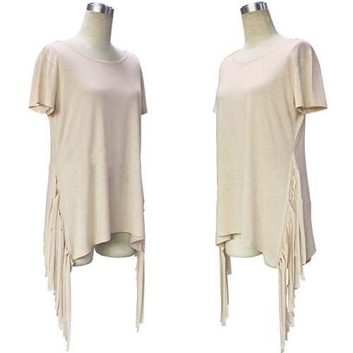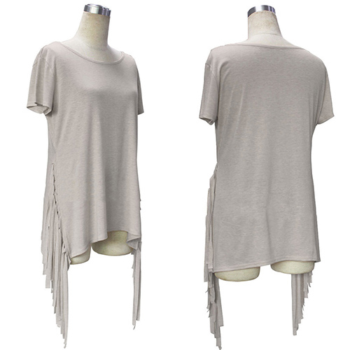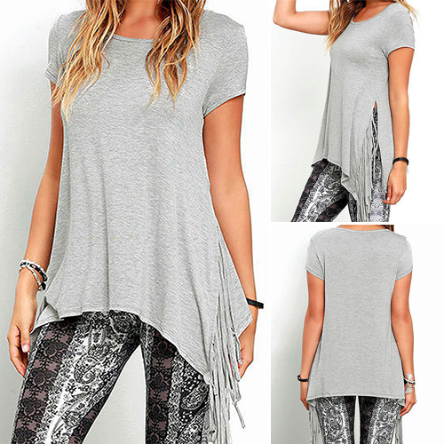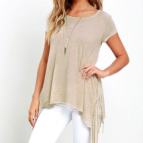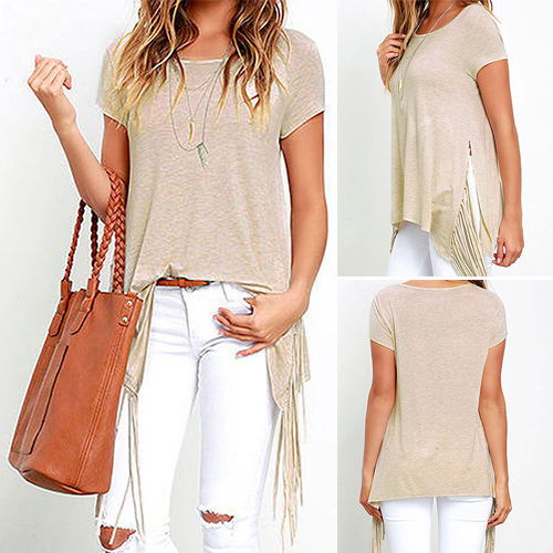 short sleeve and side slit design; its chic tassel adds some fashion elements. Look stylish and