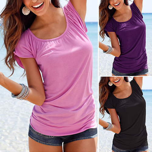 Very concise and fashionable style, with solid color, round neck and short sleeves design, casual