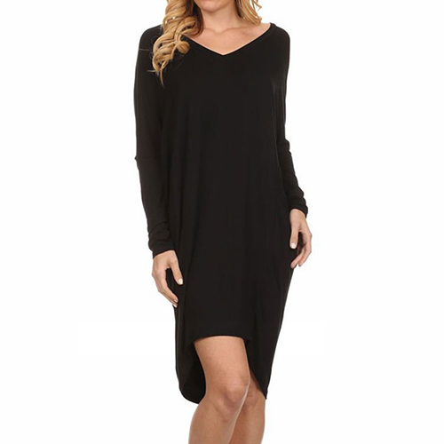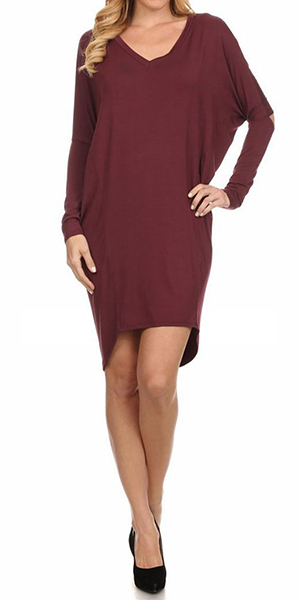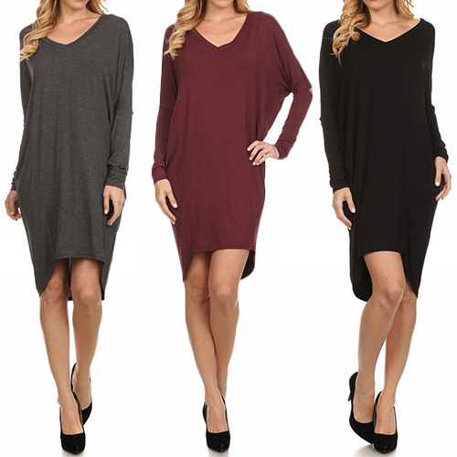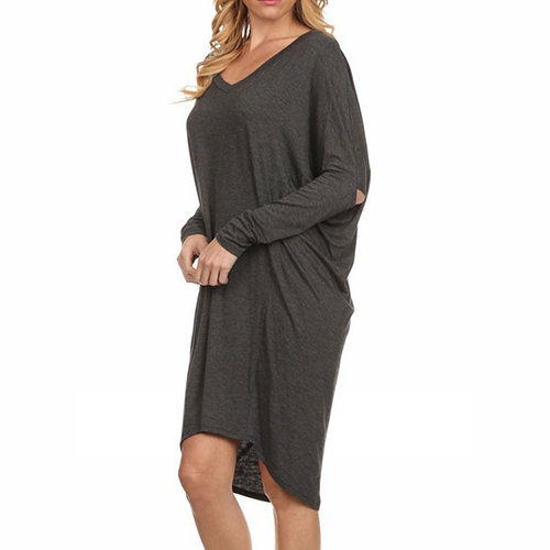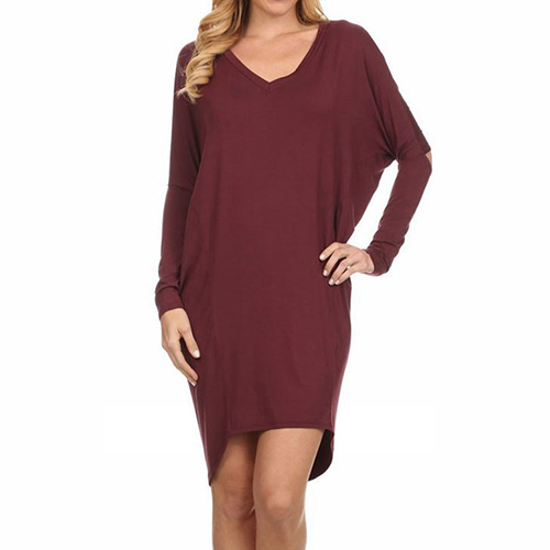 Slip into this dress for a casual and stylish style. Solid color style, designed with v-neck, bat long sleeve and