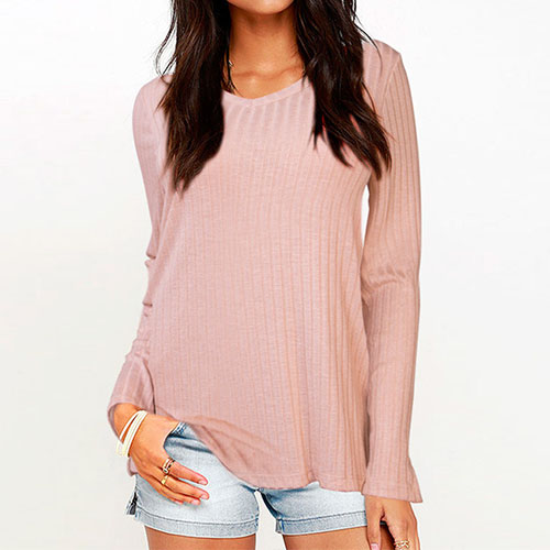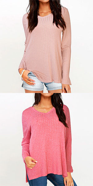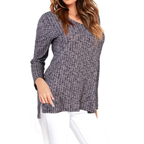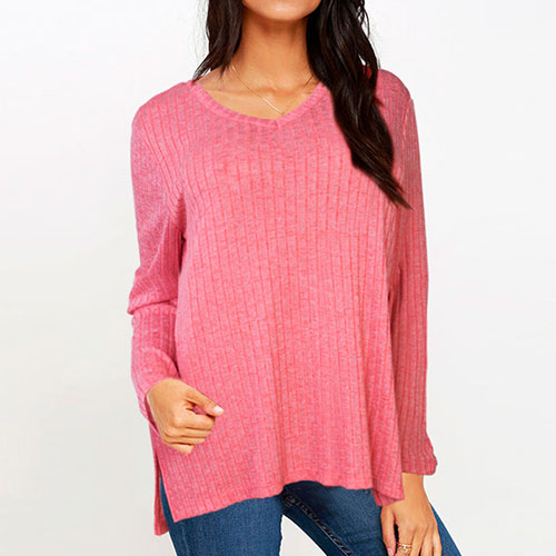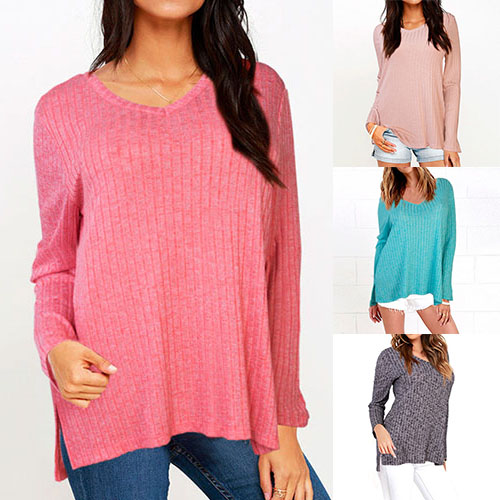 Solid color series, featuring v-neck, long sleeve and high-low hemline design, casual and concise.