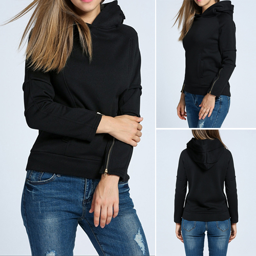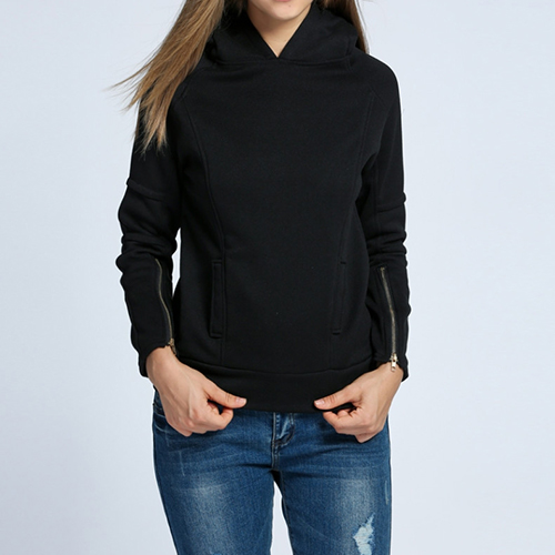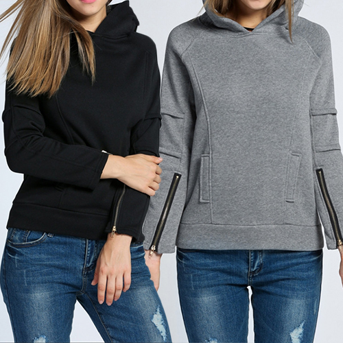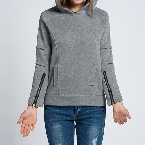 Cuff with zipper design, chic and vogue. Boasting solid color, long sleeve and hooded design, the
