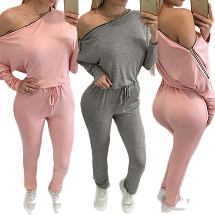this piece is equipped with zipper oblique shoulder, long sleeve and gathered waist design, which brings