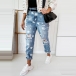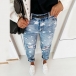 As for a laid-back and fashionable daily style,this jeans can be your perfect addition. The star printed pattern and ripped details design break the simple and classic design style. Crafted from soft,breathable fabric and a relaxed-fit silhouette,this jeans is perfect fit for matching with different style tops like t-shirts,shirts,crop tops and so on.