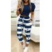 Are you still worried that you can't find a suitable sport set when you want to go out and exercise? It's coming. The fabric of this pair of pants with lace-up design at the waist part is very comfortable. It's printed with star pattern. Chic! Team with a blue topje, it looks so cool! Once you put it on, it will look very energetic. Whether for sports or outdoor activities, it must be the first choice in your wardrobe.