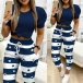 Casual Blue Short Sleeve Top + Pants with Star Printed Sports Suit