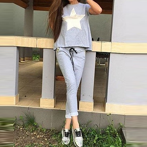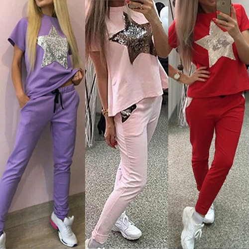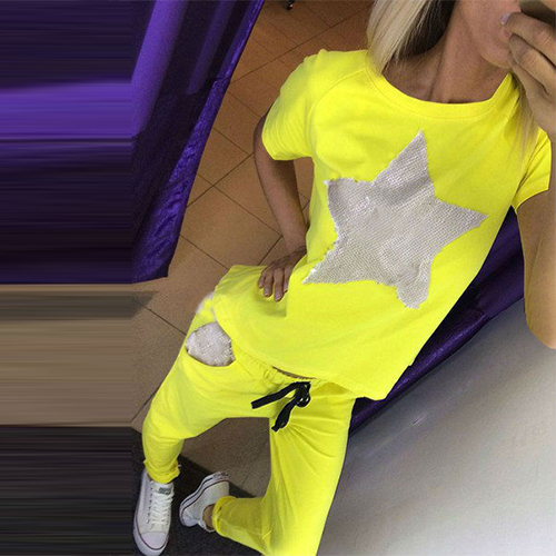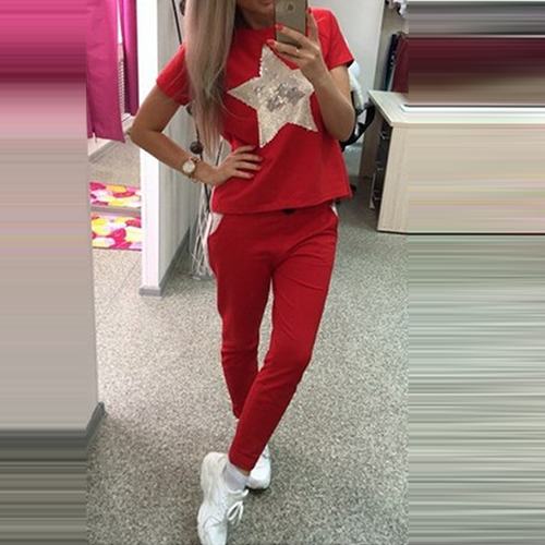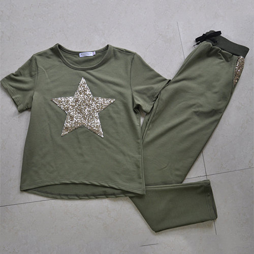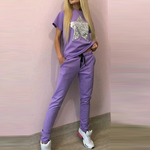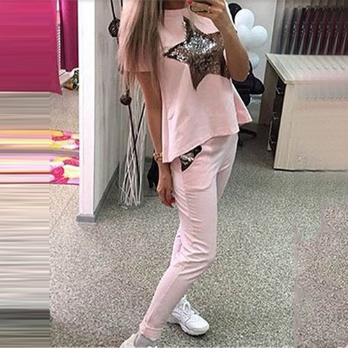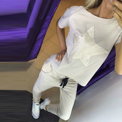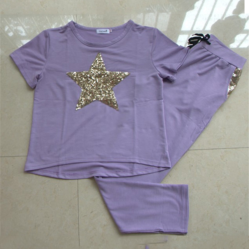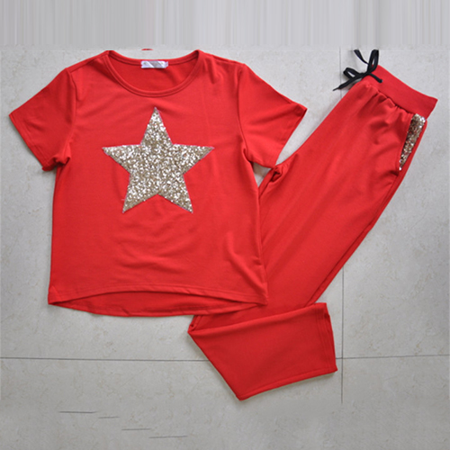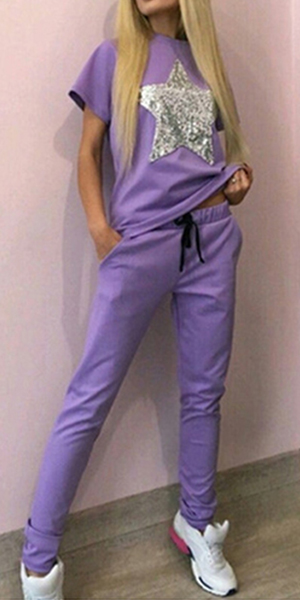 A wonderful and cozy day starts from this casual set! Including star sequin round neck short sleeve