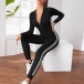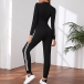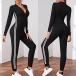 If you are a sports lover,then this sports suit would easily strike your mind. The stripe spliced design on both sides will enrich the design style. Crafted from soft and breathable fabric,with long sleeve and a fit silhouette,this piece not only can keep the comfy,but also can showcase your perfect figure. And the front-zipper design makes it easier to wear and off. So why not add one to your casual wardrobe ensemble?