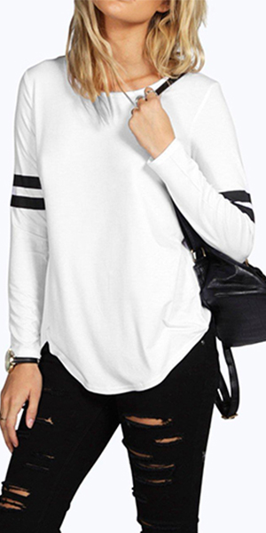sleeves with striped design aims to make this piece look not too monotonous while adds some