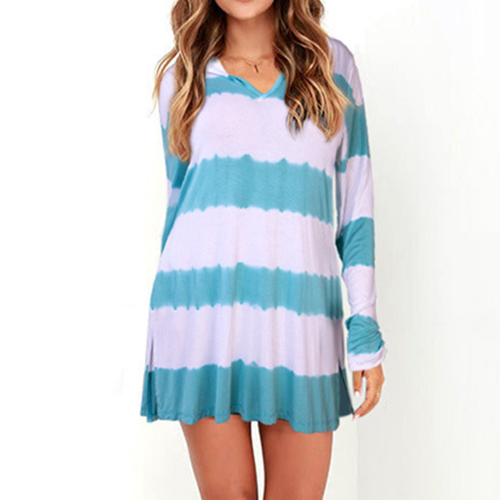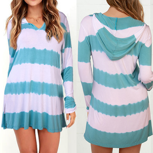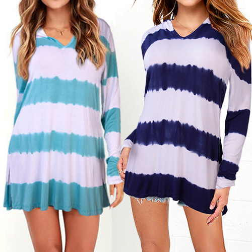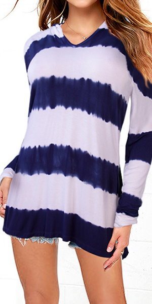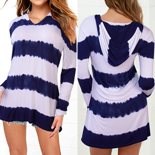 A relaxed tops is ready for your leisure time. It features hooded and long sleeve design, the striped