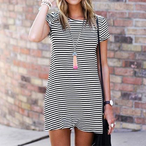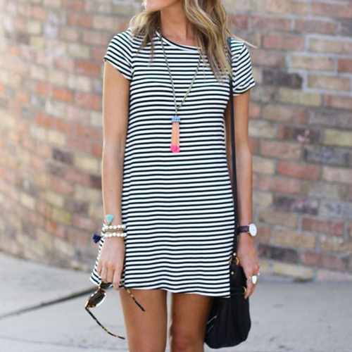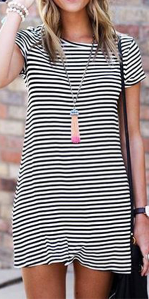 Casual style, with round neck, short sleeve and classic striped design, cozy and fashion.