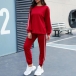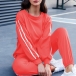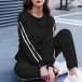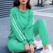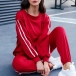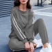 Casual Style Striped Spliced Long Sleeve Loose Top + Pants Sports Two-piece Set