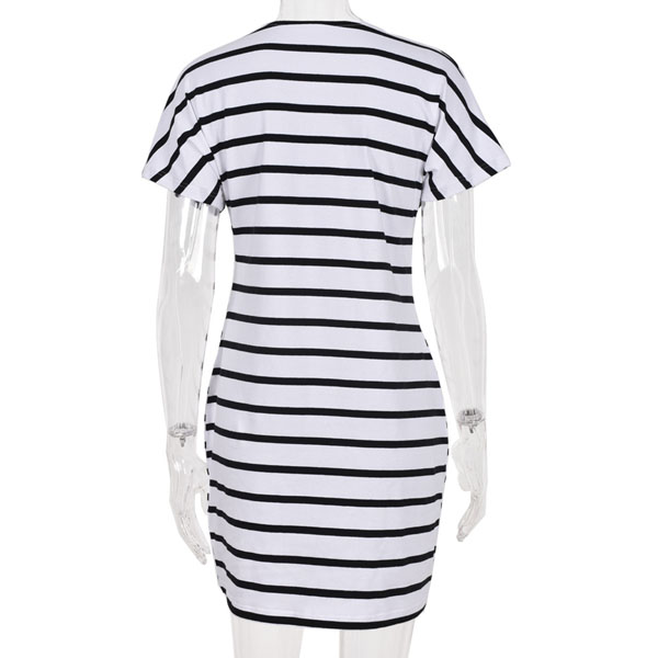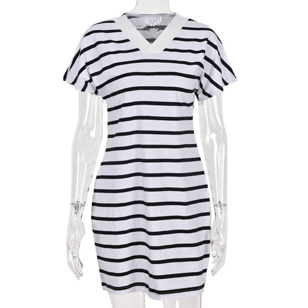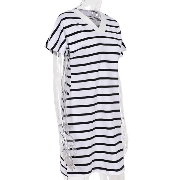 Casual Style V-neck Short Sleeves Striped Dress for Daily Wear