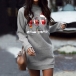 Casual Style Wine Glasses Pattern Long Sleeve Round Neck Sweatshirt Dress