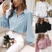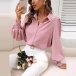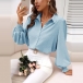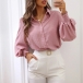 Casual Swiss-dot Stand Collar Long Sleeve Blouse