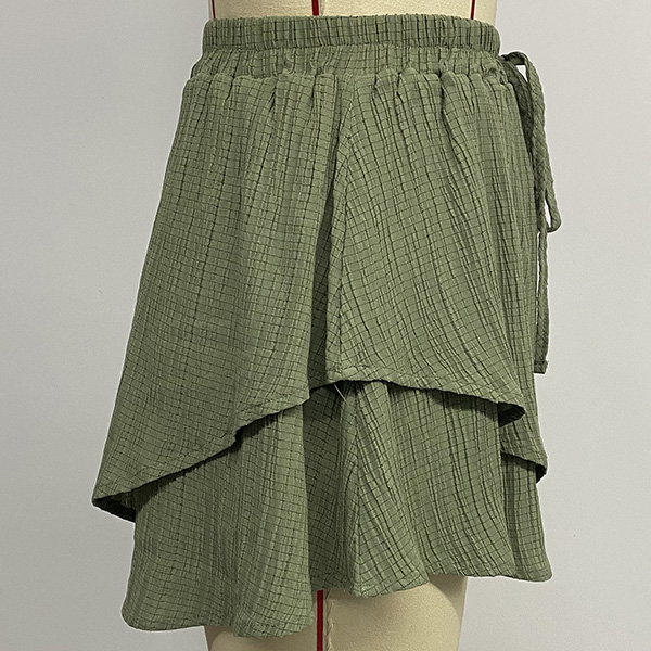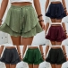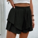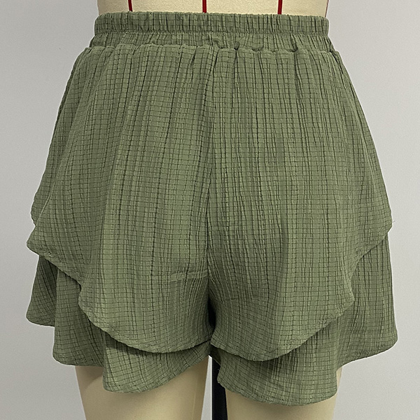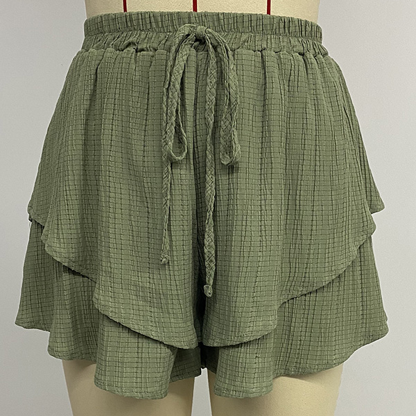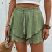 Casual Texture Elastic Drawstring Waist Tiered Shorts