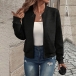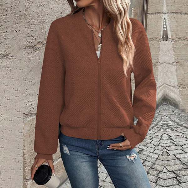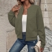 Casual Texture Long Sleeve Front Zipper Baseball Jacket
