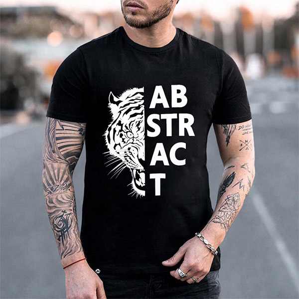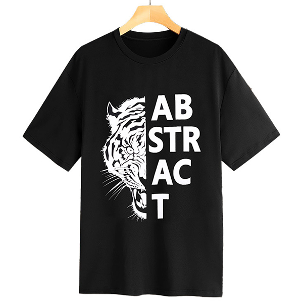 Casual Tiger Printed Letter Printed Short Sleeve Round Neck Shirt for Men