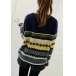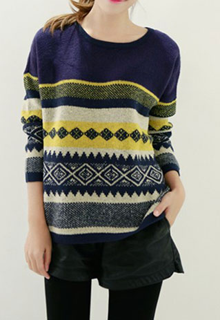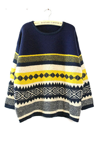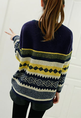 Casual Tribal Mixed Color Stripes Crewneck Pullover Knit Sweater