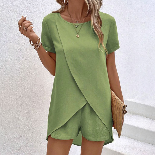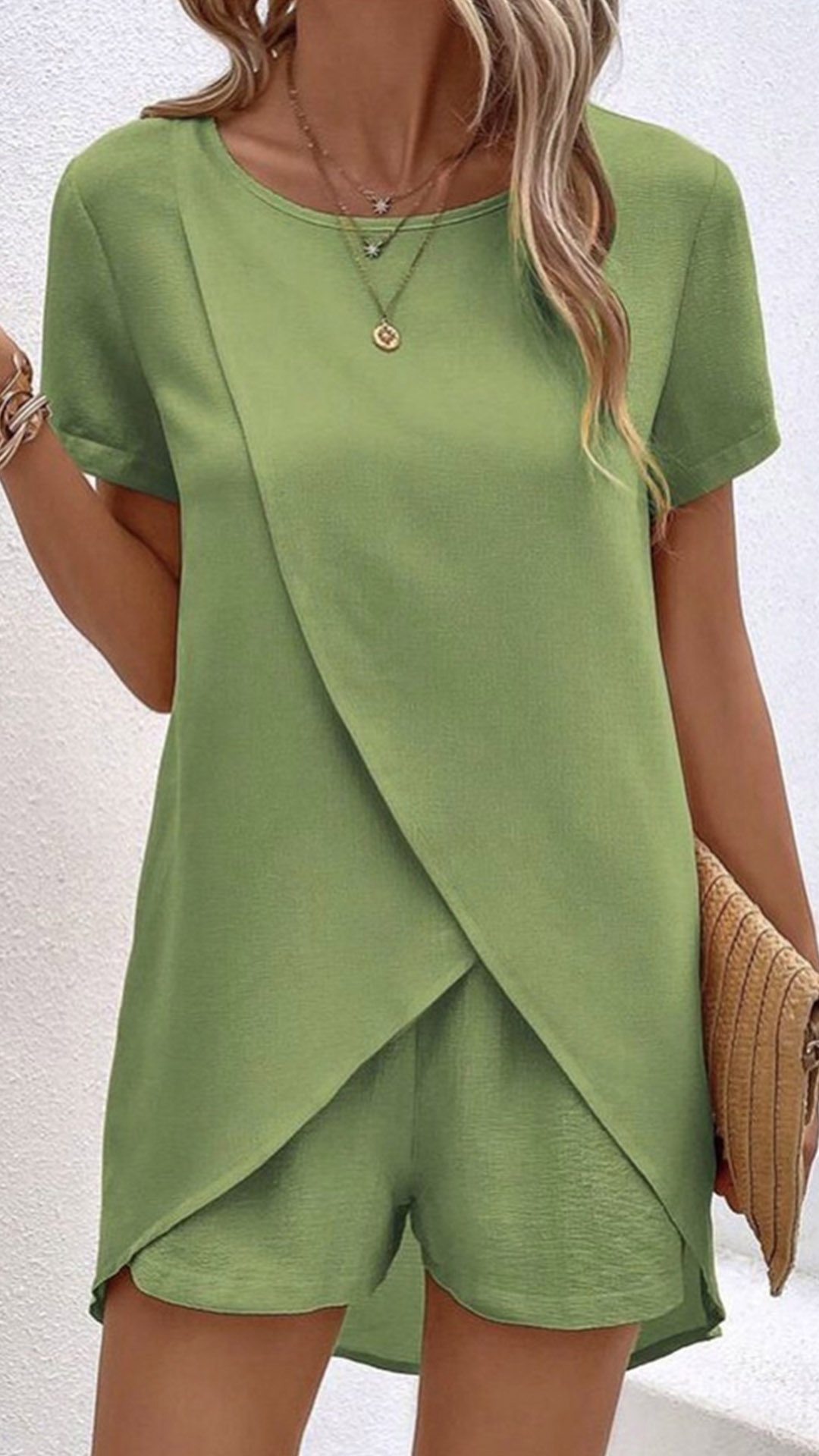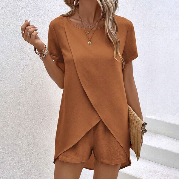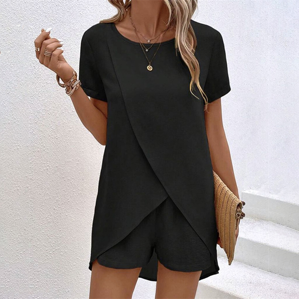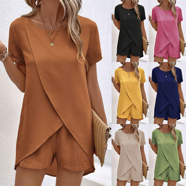 This versatile ensemble features a stylish irregular hemline shirt paired with comfortable shorts, creating a trendy and effortless look for your casual outings. Multi-colors avaible.
